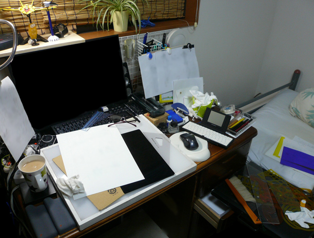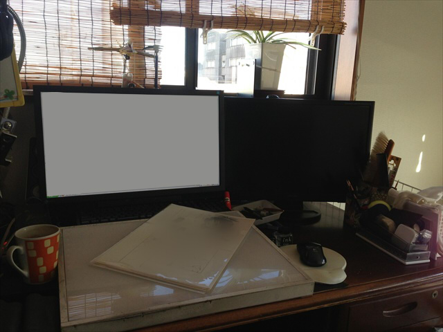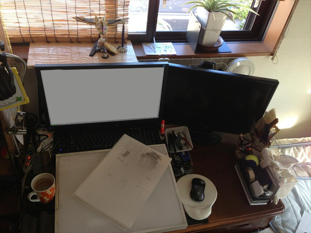 はい、水曜日。 昨日はあんなに雨降ったり寒かったりで嫌な天気だったのに 今日はものすごい暑くて日差しが強すぎる!!! ふざけんなって感じで仕事をしていましたよっと。 さて、私5年くらい前からずっとMITSUBISHIの Diamondcrysta RDT222WM-Sを使い続けていたのですが、 http://www.mitsubishielectric.co.jp/home/display/product/rdt222wms/ 最近はものすごい映ったり映らなかったりと点滅が起こったり、 ぱっと消えたりして、故障かな?と思い どうせならと、モニターを新しくしました! そしてかったのがEIZO 昔はナナオという名前だったメーカーのFS2333という機種 http://www.eizo.co.jp/products/em/fs2333/index.html IPS細胞……(違う) IPSパネルを採用したもので、sRGBならほぼ再現可能なレベルのモニターです。 (本当はadobeRGBカバーが広いのを選ぼうとしたけど、今の私の技術力では有り余る製品でした) さて、それが今朝届きました!! キャリブレーションソフトであるEasy PIXもセットです。 さて、早速中身を開封。 この段ボールを開封する瞬間がいいですよね。 やはりHDMIのケーブルは入っていなかった。 しかし前もってミドリ電化(現:EDION)で購入していた私に死角はなかった! さて、まずはスタンドを取り付けましょう。 ジョジョじゃないですよ。あんなの取り付けたらどうなるっちゅうねん。 まずモニターのそこを丸出しにして(♂) そしてモニターとスタンドを合体!! ……が、合体!!!!(大事なことなので) こうなったら後はこっちのもんですね。(なにと戦っているんだ) さて、以前まで使っていた私の机の環境はこんな感じでした。 ごっちゃごちゃしてるなぁ! さて、まずはトレース台や右の白いモニターなどを除去して掃除しますよ。 ついでに今まで使ってたモニターを白いモニターの位置へ移動。 広いな、この机。 さて、FS2333を前面に置き、セッティングし直しますよ またごちゃごちゃしてるような…… ちなみに上からはこんな感じ。 まあ前よりは綺麗だね。 さて、このモニターでこれからも絵を沢山描きますよー! がんばっていきまっしょい!!! ちなみに、今はこんな魔理沙を描いています。下書きです PR |
