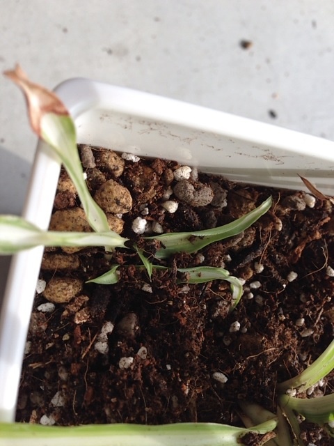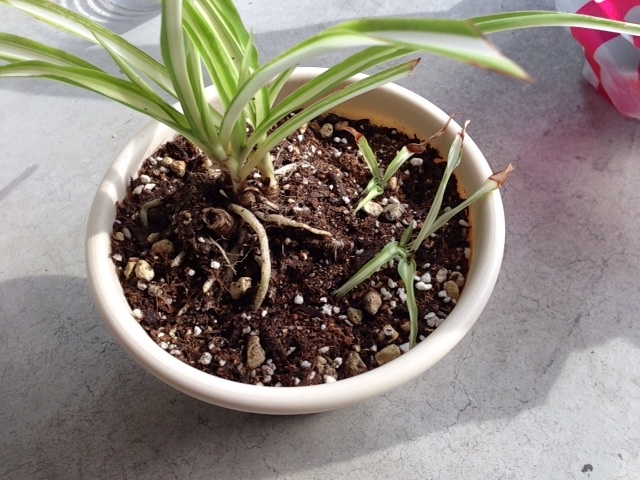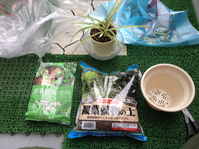 鉢がオリヅルランに合わないほど小さくなってしまいましたので植え替えをすることにしました。