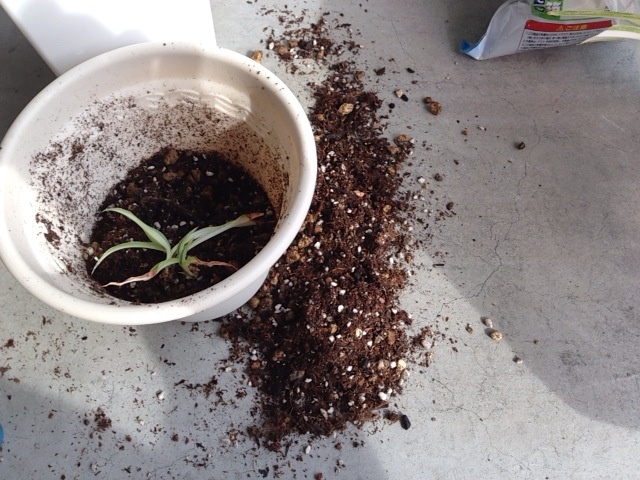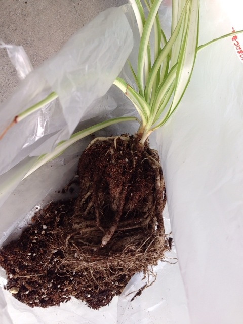 まずは前の鉢からオリヅルランを引っこ抜いて