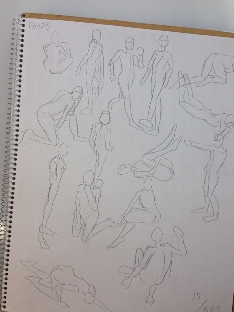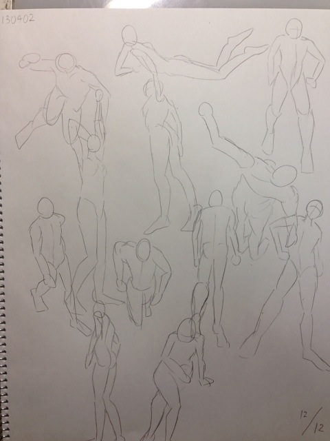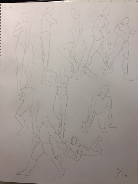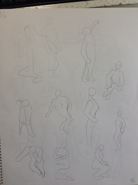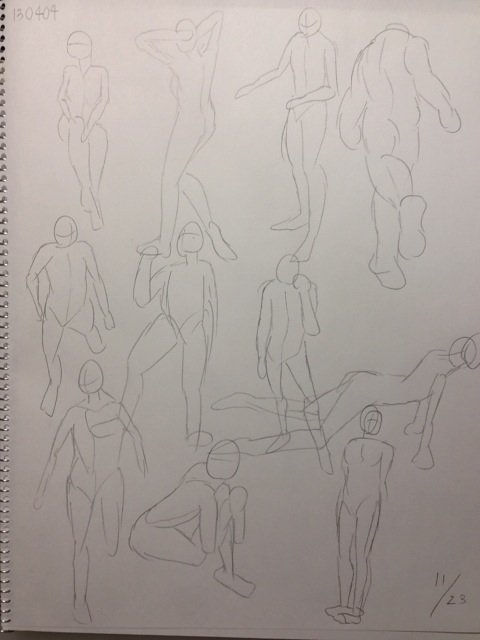 ちなみにこの一冊目のクロッキー帳の最初のドローイングと上のさっきやったドローイングを比較してみたいと思います。